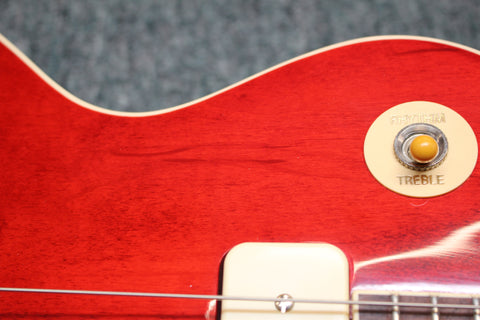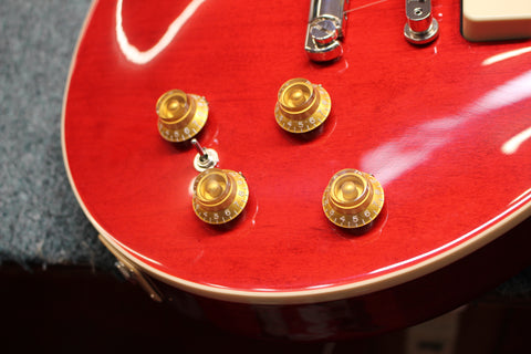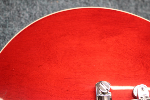A mahogany body with a plain maple cap topped with a 60s Cherry finish, just like Warren's cherished ’61 ES-335