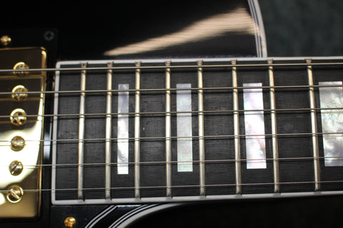 The Les Paul Custom was first introduced in 1953 as an upscale version of the Les Paul model. The model was requested by Les Paul himself, who wanted a black version of the Les Paul guitar that “looked like a tuxedo.” In 1961, the single cutaway Les Paul Custom was discontinued in favor of a new double-cutaway model that would later become known as the SG™ Custom, and the original single cutaway model was reintroduced in 1968. During the 1970s, production of the Les Paul Custom transitioned from Kalamazoo to Nashville, and the Les Paul Custom received various changes that further refined the model, including a multi-piece maple top that replaced the original all-mahogany-body construction along with a new maple neck. Today, these 70s-era Les Paul Customs are some of the fastest-appreciating guitars on the vintage market. Now, after 20 years of offering the Les Paul Custom only through Gibson Custom, Gibson is proud to release the Les Paul Custom 70s. It features classic 1970s specs, including a mahogany body with a three-piece maple top. The body is bound with 5-ply top binding and 3-ply back binding. The maple neck has a 70s profile and a volute and is topped with a bound ebony fretboard with 22 medium jumbo frets and mother-of-pearl block inlays. The bound headstock is also adorned with mother-of-pearl in the form of the famous Custom Split Diamond mother-of-pearl headstock inlay, which originated with the Gibson Super 400 and has become synonymous with the Les Paul Custom. The Les Paul Custom 70s features gold hardware, including an aluminum Nashville Tune-O-Matic bridge, an aluminum Stop Bar tailpiece, and smooth-turning Grover Rotomatic with Keystone button tuners for reliable tuning stability. Even the smallest details have been recreated, including Posi-Lok strap locks, a 5-ply pickguard, and 70s-era-approved Witch Hat control knobs. The electronics are also era-appropriate, with a pair of Calibrated T-Type humbuckers with individual volume and tone controls that are hand-wired to Orange Drop capacitors. The Les Paul Custom 70s is available in four gloss nitrocellulose lacquer finishes, including Ebony, Tobacco Burst, Wine Red, and even a version with a beautiful Buttercream Top, and each comes packed in a hardshell case for protection when it’s in storage and traveling. The wait is over–The Les Paul Custom has returned to the Gibson USA lineup and is ready to rock your world!