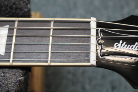 Now, the Les Paul Studio family has a new member - the Les Paul Studio Session, a reimagined and enhanced version of the classic Les Paul Studio with upgraded features and refinements based on customer feedback and player requests. A step up from previous Les Paul Studio models, it features an Ultra Modern weight-relieved mahogany body, making it lighter and more comfortable to play, no matter how long the gig or jam session runs. The carved, AA figured maple cap not only looks great but also adds brightness and definition to the overall tone and combines perfectly with the warmth and midrange punch from the mahogany body for that legendary Les Paul sound that has been featured on countless hit recordings and on concert stages worldwide. The glued-in mahogany neck provides rock-solid coupling between the neck and body for increased resonance and sustain. The neck features a Modern Contoured Heel for unmatched access to the upper frets and a fast-playing SlimTaper profile, and it is capped with a bound ebony fretboard that is equipped with acrylic trapezoid inlays and 22 medium jumbo frets. The 12” fretboard radius is equally comfortable for both rhythm chord playing and lead string bends, and you’re going to love how this instrument feels in your hands. The high-quality Grover Rotomatic tuners with Keystone buttons add to the guitar’s classic visual appeal, and together with the fully adjustable aluminum Nashville Tune-O-Matic bridge, aluminum Stop Bar tailpiece, and Graph Tech nut, help to keep the tuning stability nice and solid so you can spend more time playing and less time tuning.