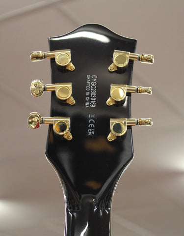 This guitar boasts stage-stealing style with gleaming gold pickguards and hardware, including the Bigsby B70 vibrato tailpiece, anchored Adjusto-Matic bridge and G-arrow knobs.