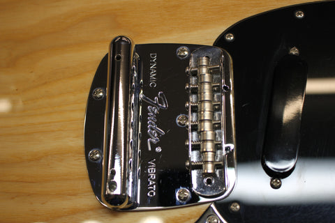 Featuring a chambered ash body design for increased resonance and reduced weight and a one-piece 22-fret modern "C"-shaped maple neck with 9.5" radius fingerboard and medium jumbo frets, this guitar is a comfortable and versatile stage performer. Electronics include a set of custom, vintage-inspired Ben Gibbard Mustang pickups and a stage-ready 3-way rotary pickup selector switch. What appears to be a vintage-style Mustang bridge is actually an innovative modified hardtail setup, providing rock-solid stability, intonation and sustain.
