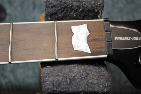 LTD Deluxe basses are designed to offer the tone, feel, looks, and quality that working professional musicians require in an instrument, while remaining affordable enough for serious players. The Phoenix-1004 is a bass we offered previously and is back by popular demand. This bass is stunning with its 34” scale neck-thru-body design, using a five-piece mahogany/walnut neck that has a satin finish on the back for smooth playability, along with mahogany body wings, and a Macassar ebony fingerboard with 21 extra-jumbo stainless steel frets and ESP flag inlays. Other highlights of the Phoenix-1004 include its reverse headstock, LTD vintage tuners, Gotoh 201B-4 bridge, and a set of outstanding EMG 35P4 and EMG 35J pickups.